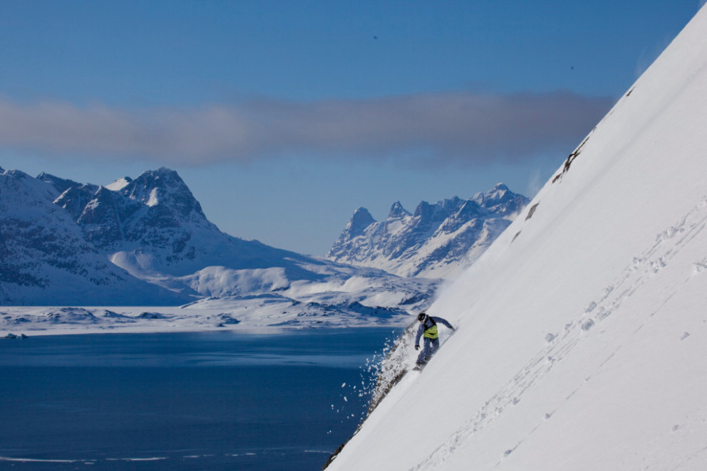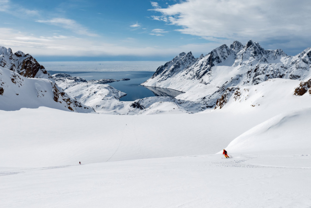 Groenlandia ofrece uno de los terrenos más exclusivos y espectaculares del mundo para la práctica del heliski. La operación se desarrolla principalmente en la costa oeste, donde las montañas caen directamente sobre el mar. Las bajadas pueden superar los 1.200 metros de desnivel, empezando en glaciares de alta montaña y terminando literalmente a orillas del fiordo.